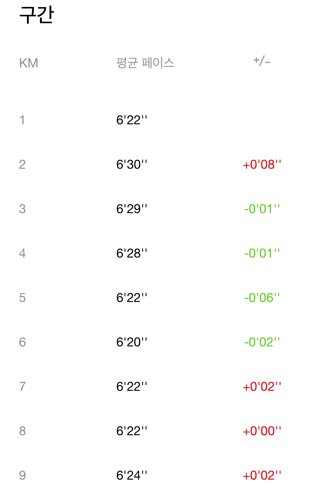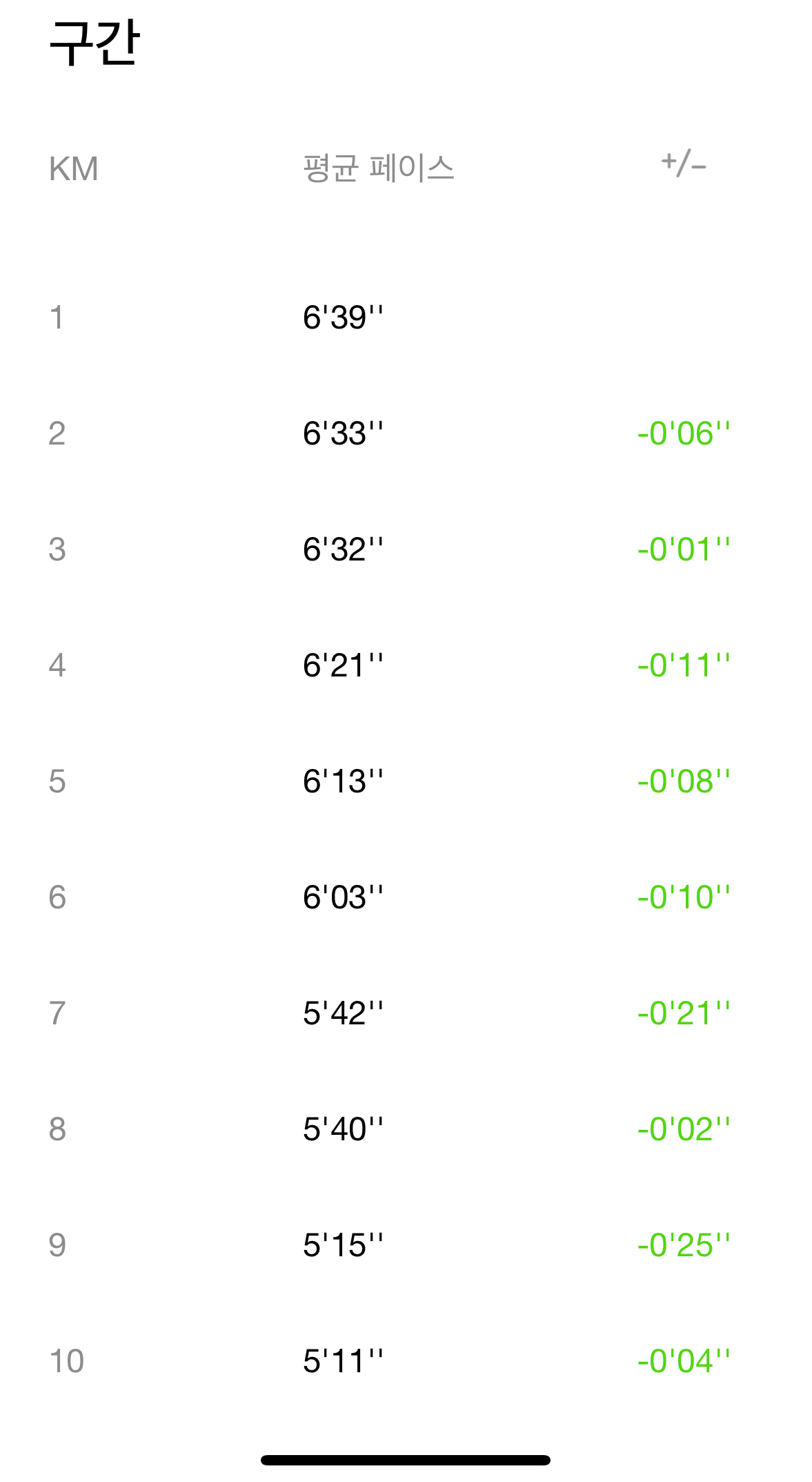 ✔ 10km 구간별 목표 페이스를 설정하고 점진적으로 속도를 높이기